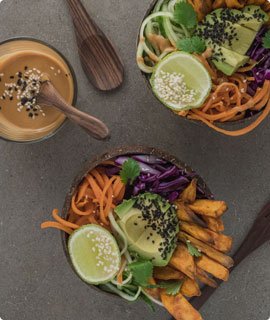 Special sauce tossed with fries, onion, tomatoes and plant based steak. Served with a side of white rice and house green sauce.