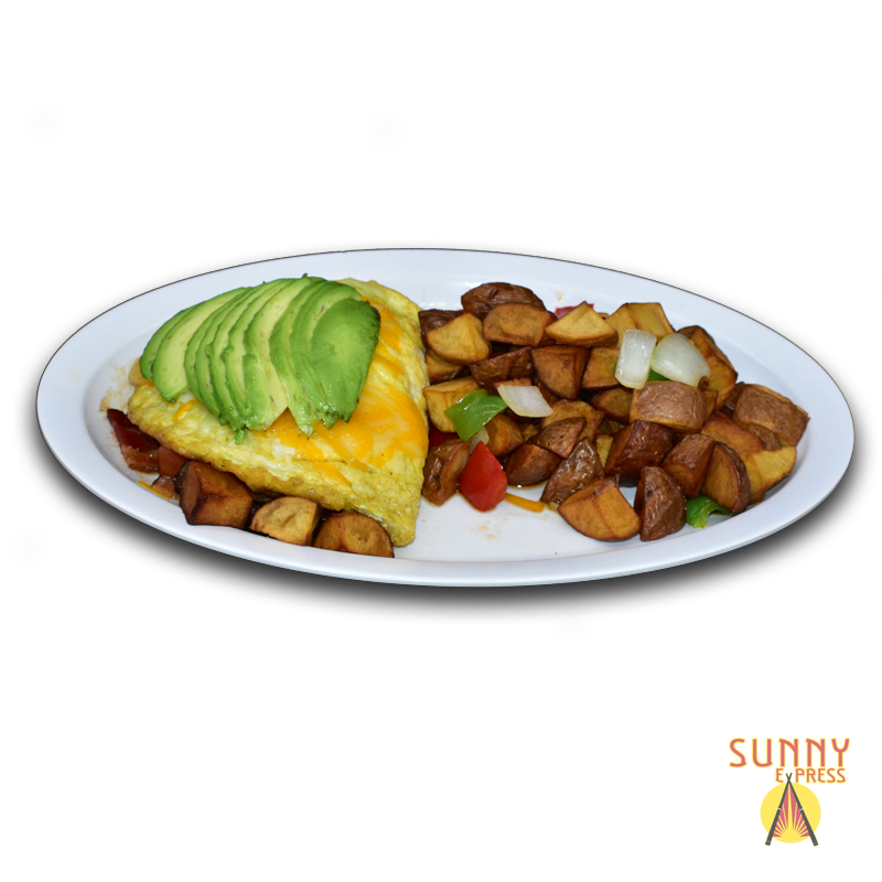 Sunny Express offers a variety of veggies to choose from, allowing you to customize your egg to your exact liking. Whether you’re a fan of mushrooms, spinach, bell peppers, or onions, there’s a veggie combination to satisfy every palate. Not only do these fresh vegetables add vibrant color to the dish, but they also bring a burst of flavor that pairs perfectly with the fluffy eggs and rich cheese.